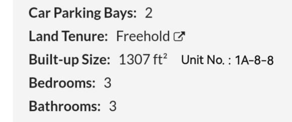- BUA: Build-up Area: 1,307sq ft