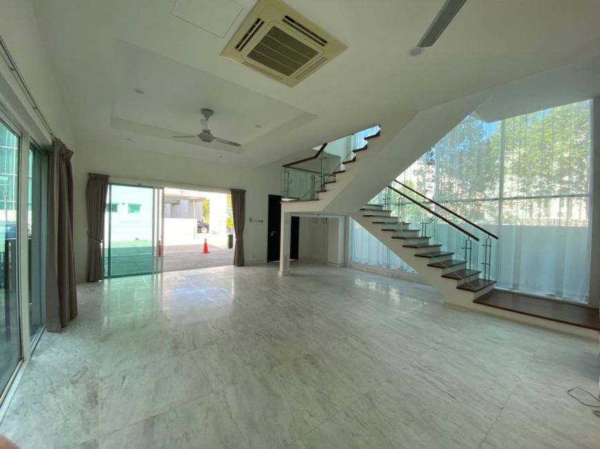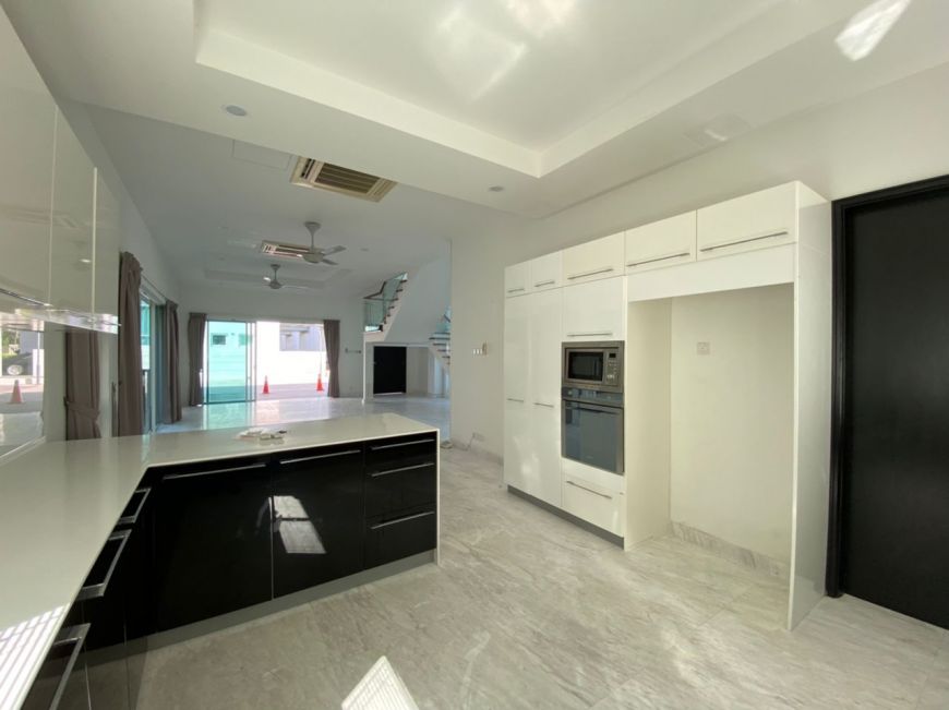Land area 3636 sq ft, BU 4330 sq ft, 4+1 rooms, 4+1 bathrooms, unfurnished with air conditioners, fans, lightings, water heaters, curtains, kitchen cabinet with built in microwave, oven & dishwasher