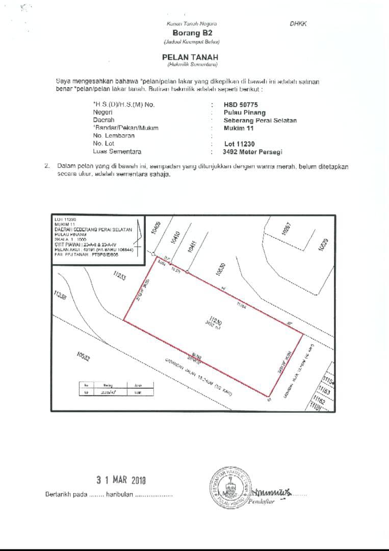 Surrounding completed with facilities TNB Cable, R&D, PBA Piping, already paid IWK Contribution and