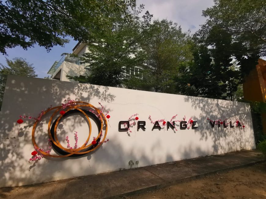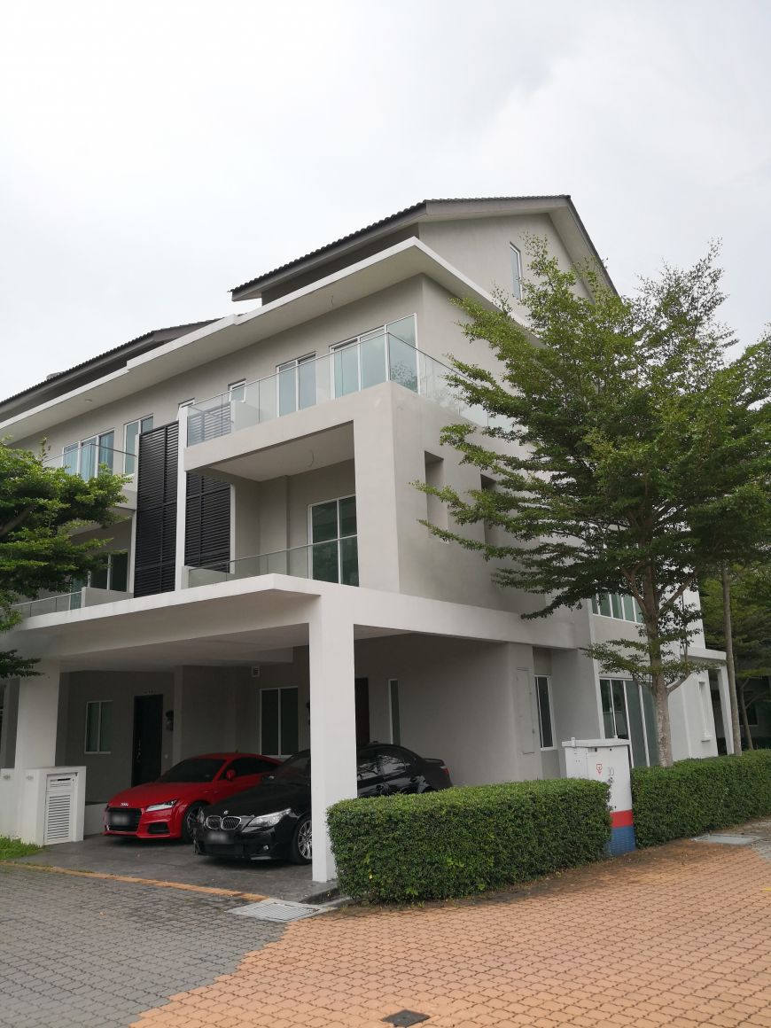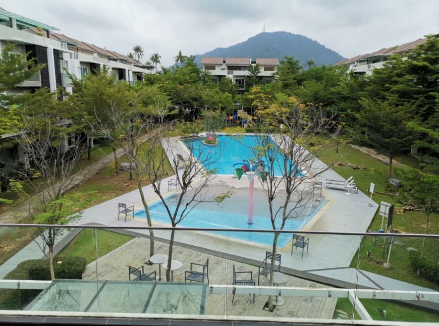 *[Gated & Guarded Orange Villa Corner pool view 3 Storey Terrace House with huge extra parking space at Bukit Mertajam Penang For Sales]*