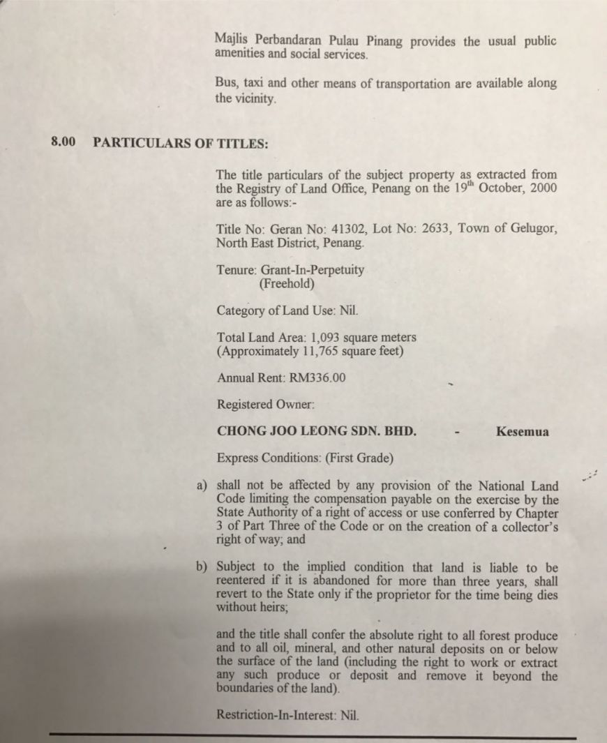 - Land Area: 11,765sq ft